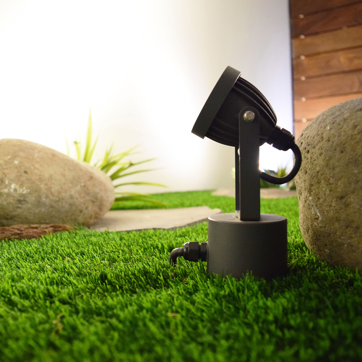 Luminaria de estaca para iluminar y resaltar jardines y jardineras.