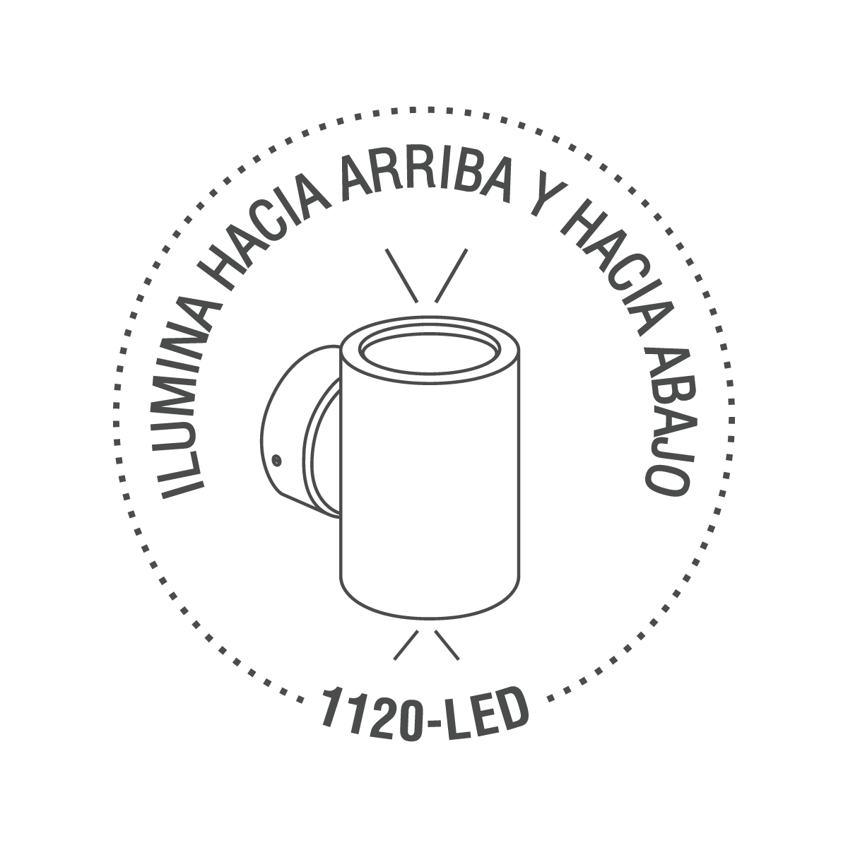 Luminaria LED terminado grafito para sobreponer en muros de exterior, ilumina hacia arriba y hacia abajo.