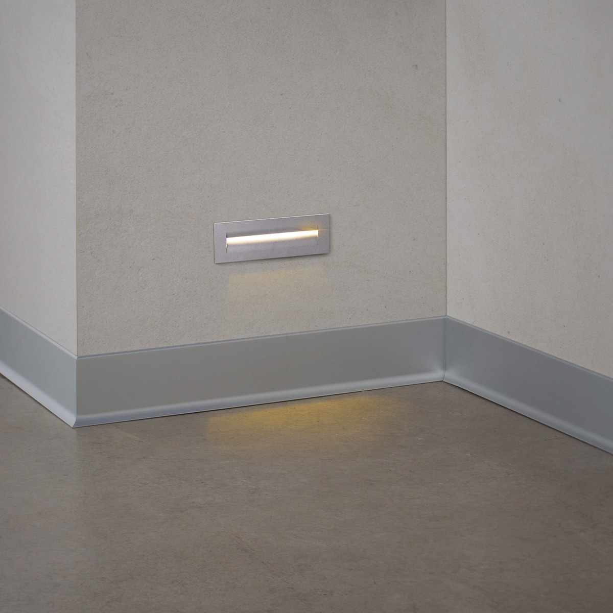 Luminaria de cortesía LED color gris, ilumina corredores, escaleras y pasillos.