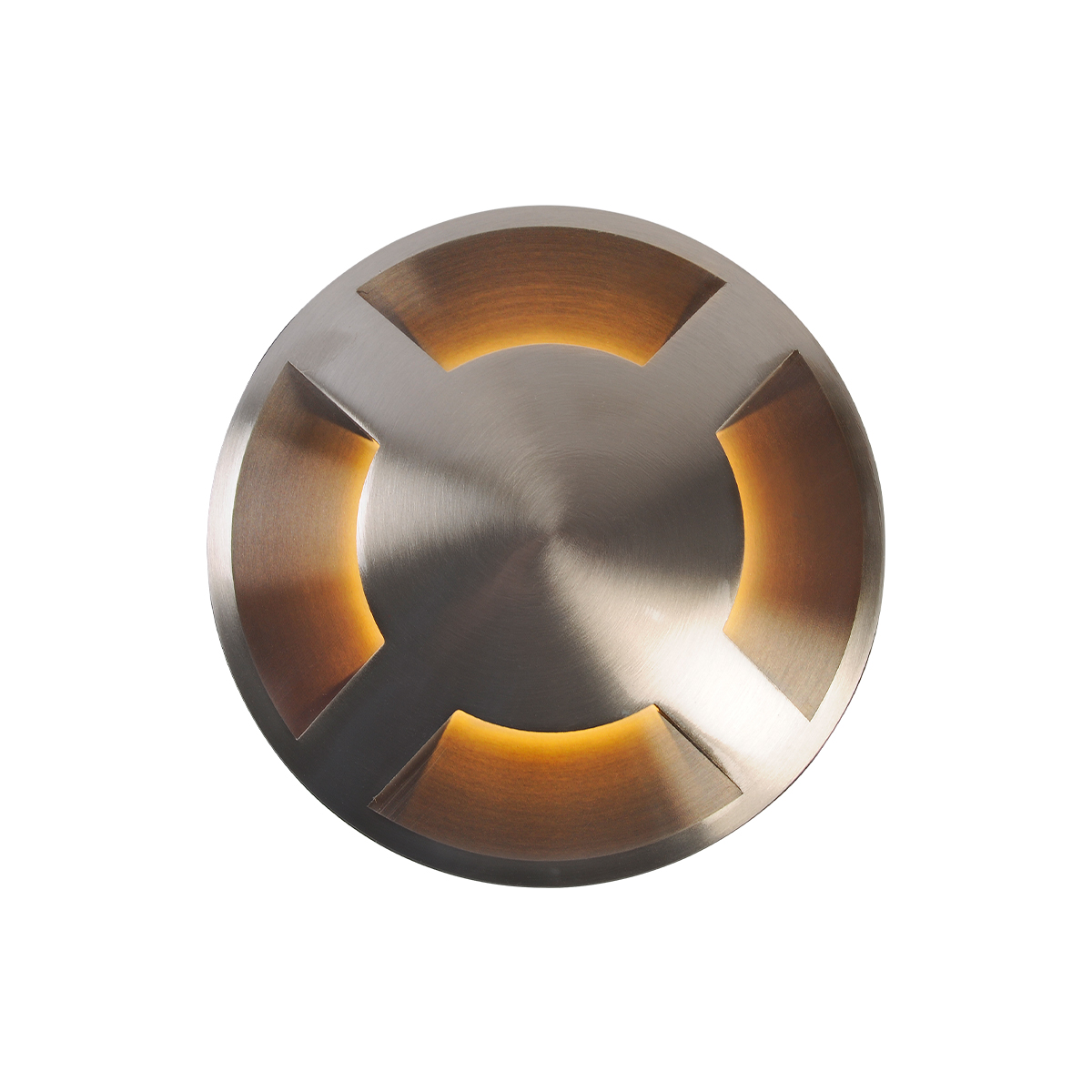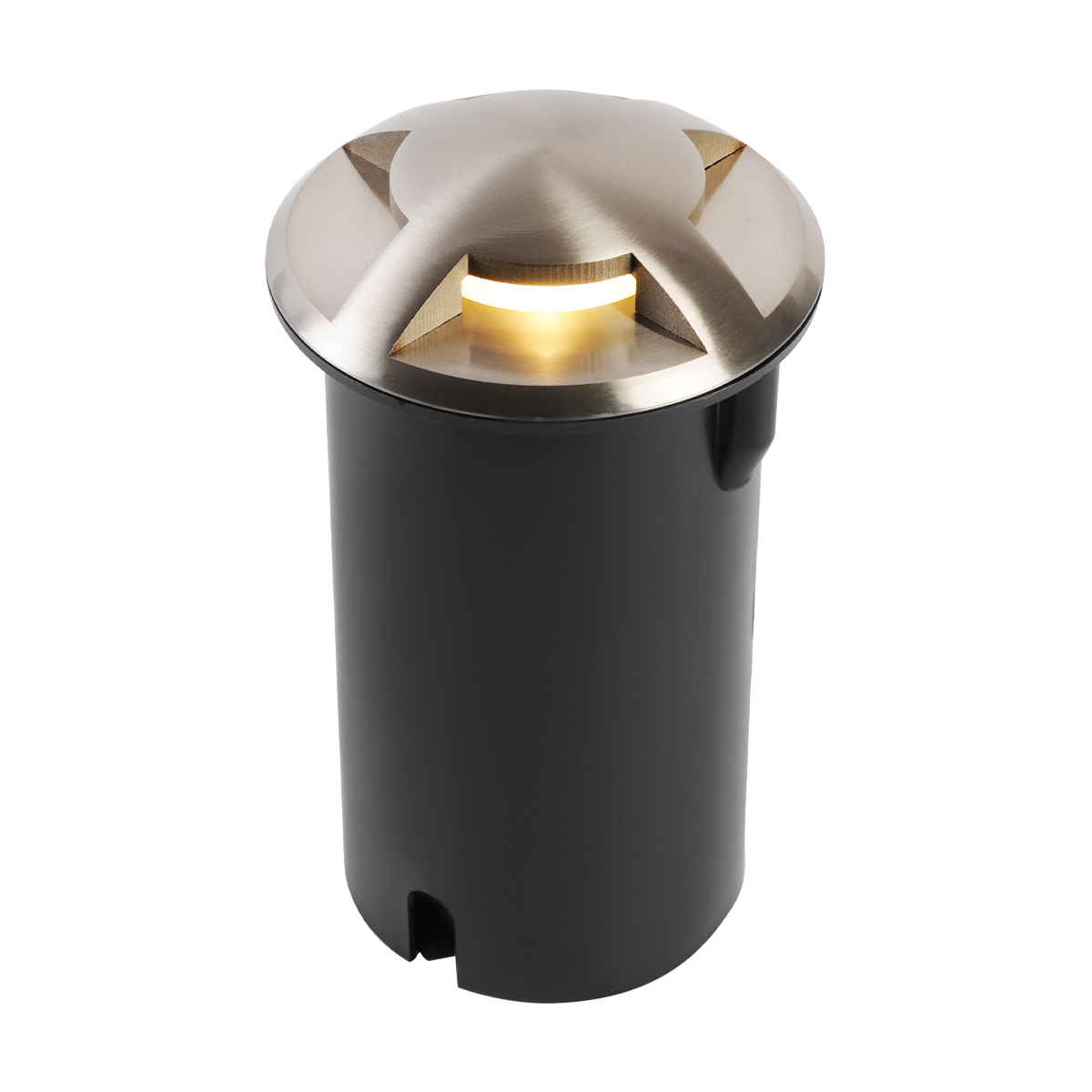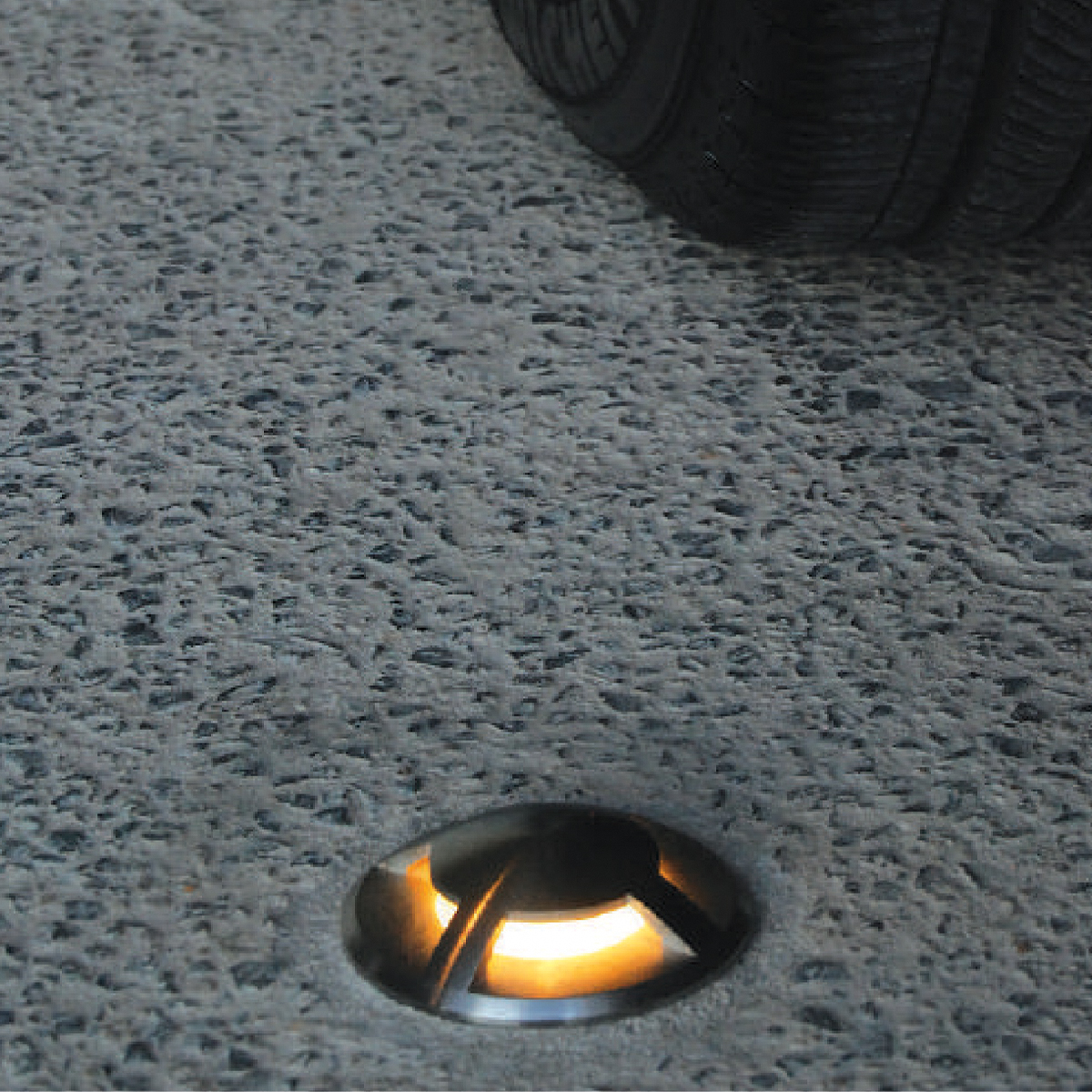 Luminaria para empotrar en piso de exterior, material acero inoxidable.