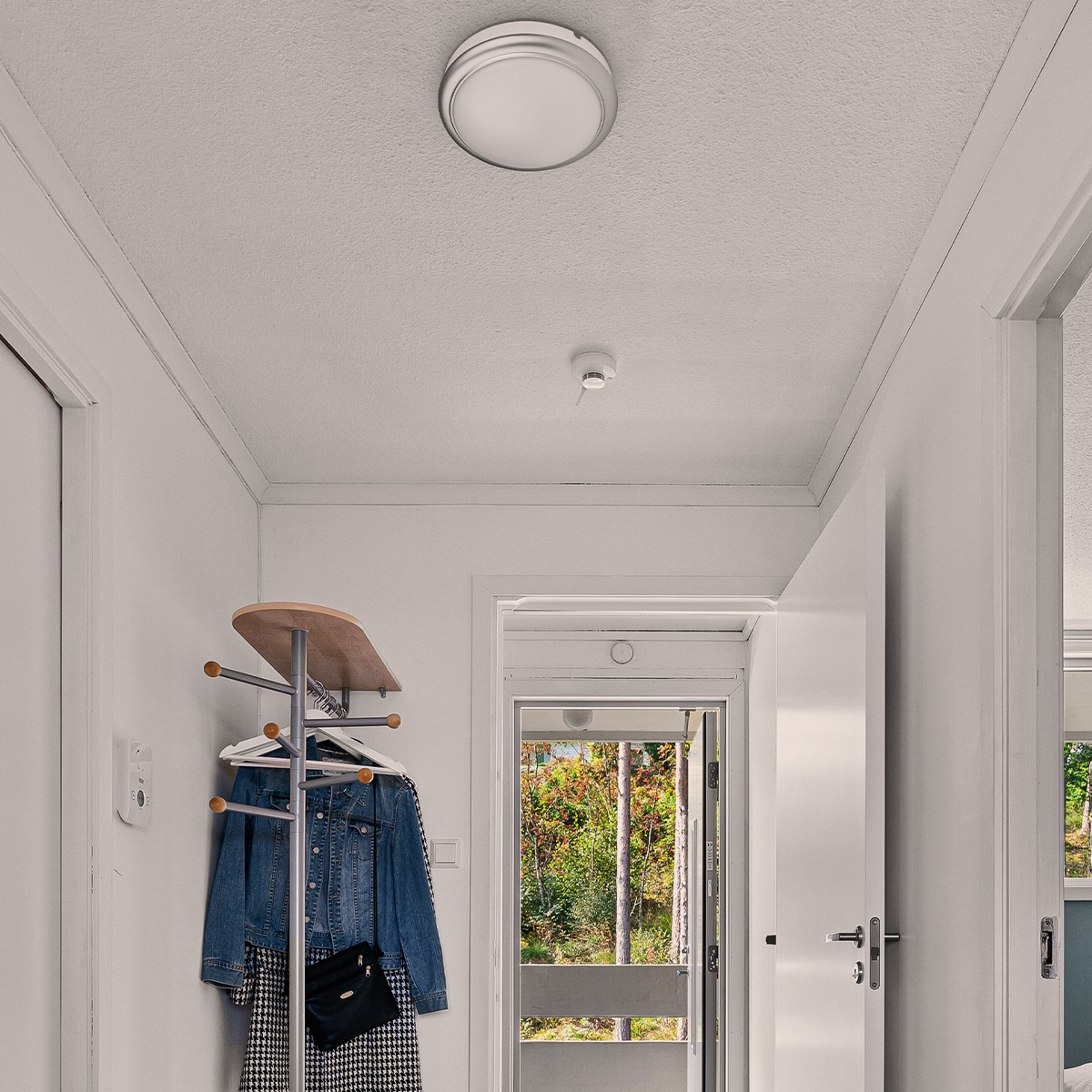 Luminaria plafón en terminado satín para sobre poner en techos.
