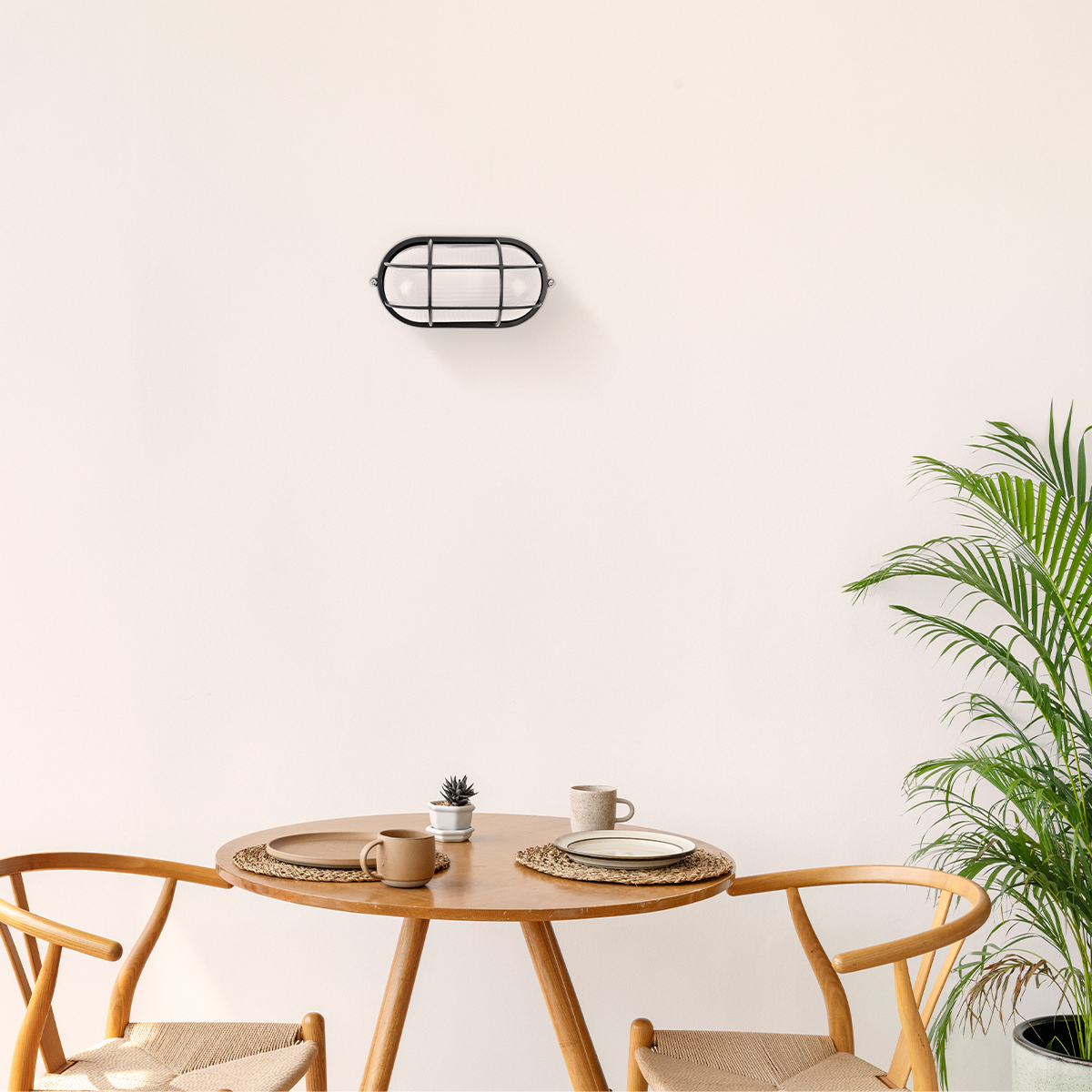 Luminaria de techo tipo nautica color negra para interior y exterior.