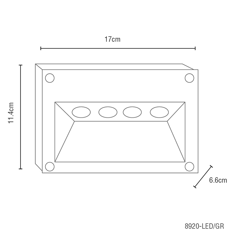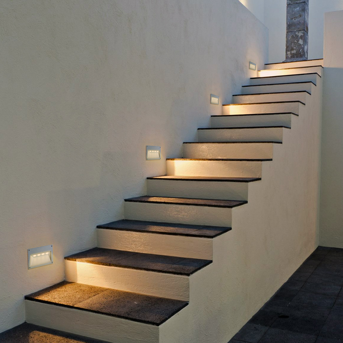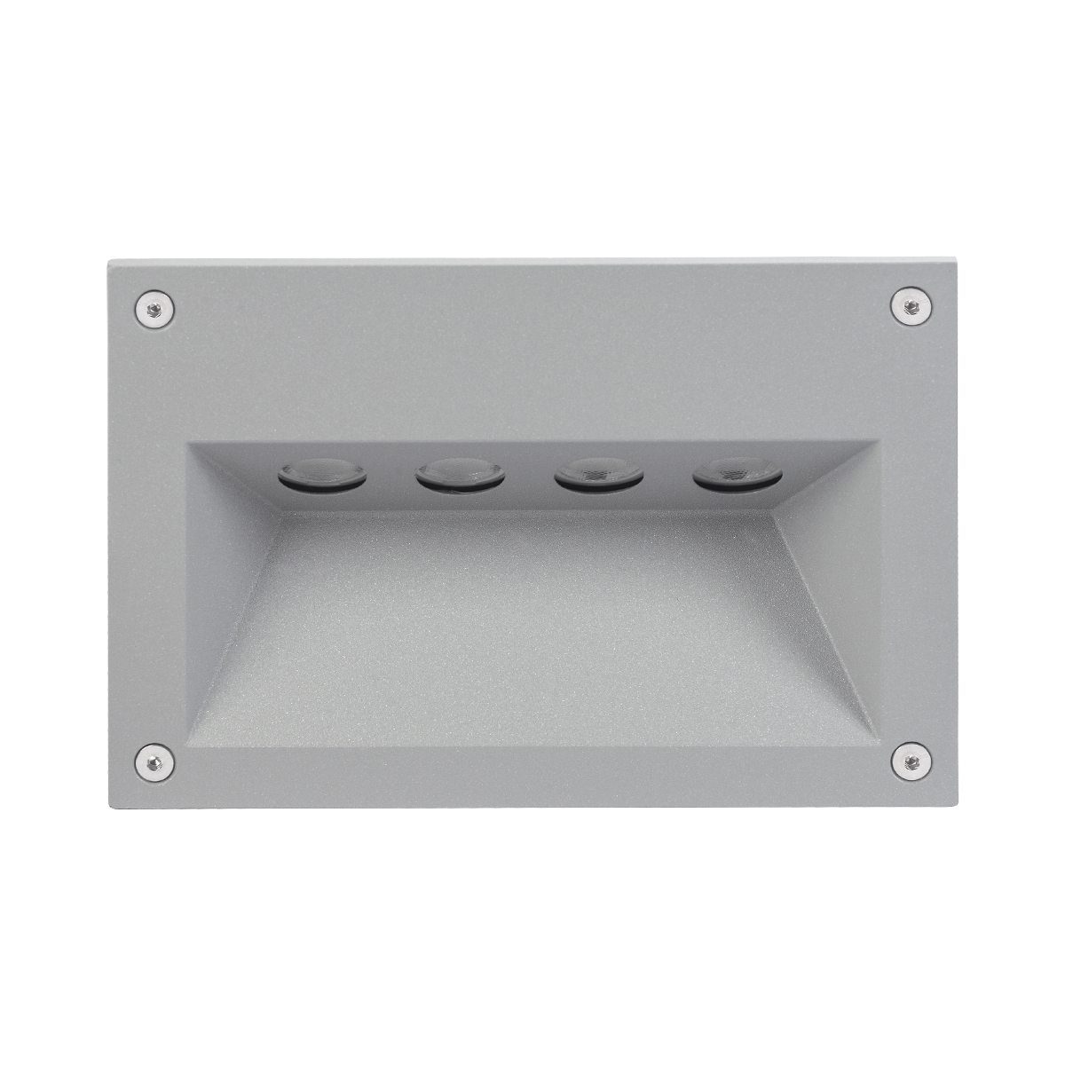 Luminaria de cortesía color gris, ideal para iluminar escalones y pasillos.