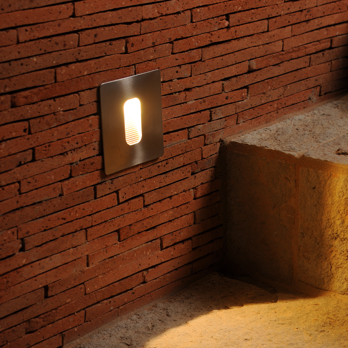 Luminaría de cortesía de acero inoxidable para muros, ilumina escalones y pasillos.