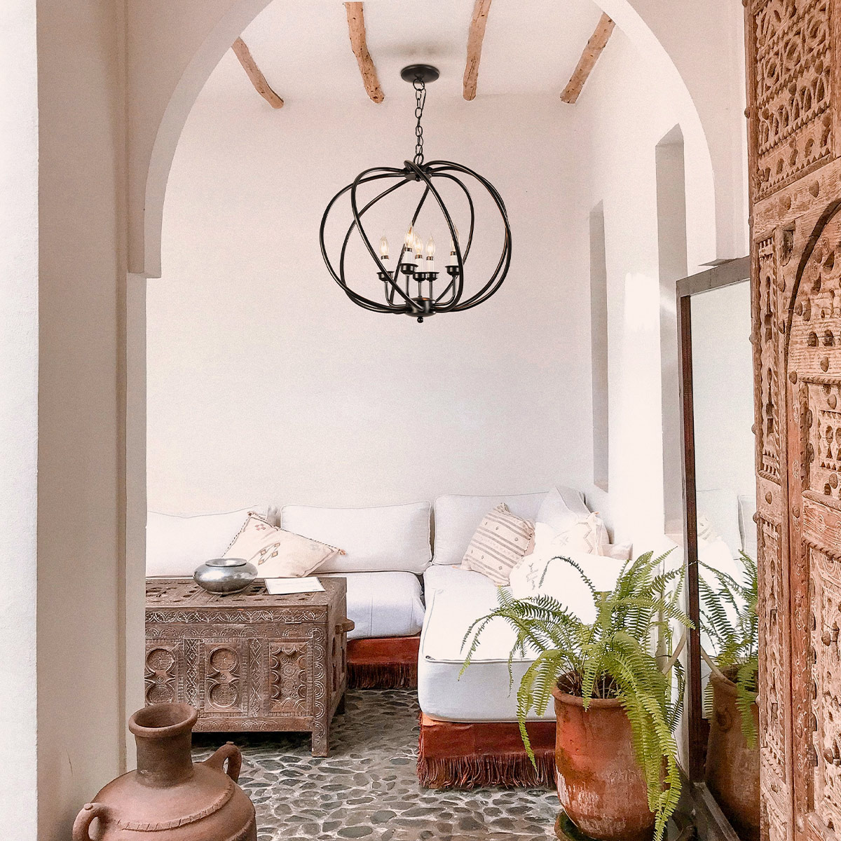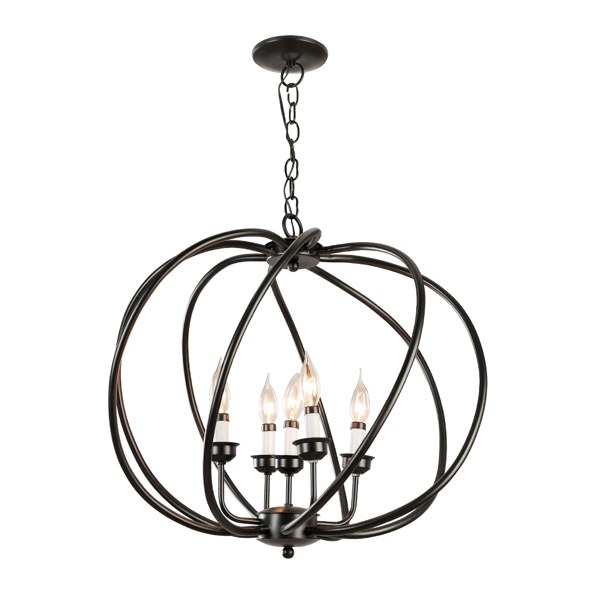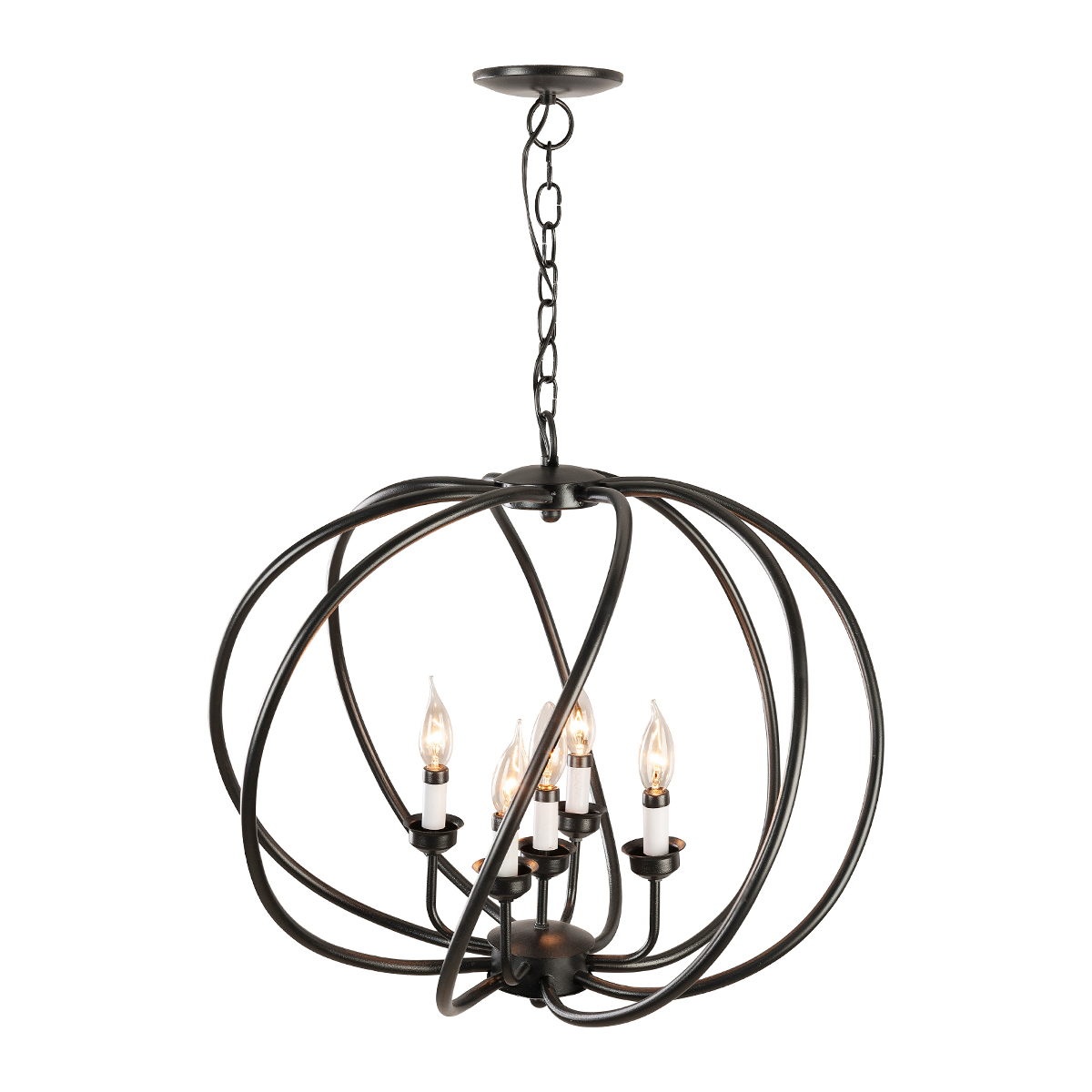 Candil hecho en México color negro de 5 luces.