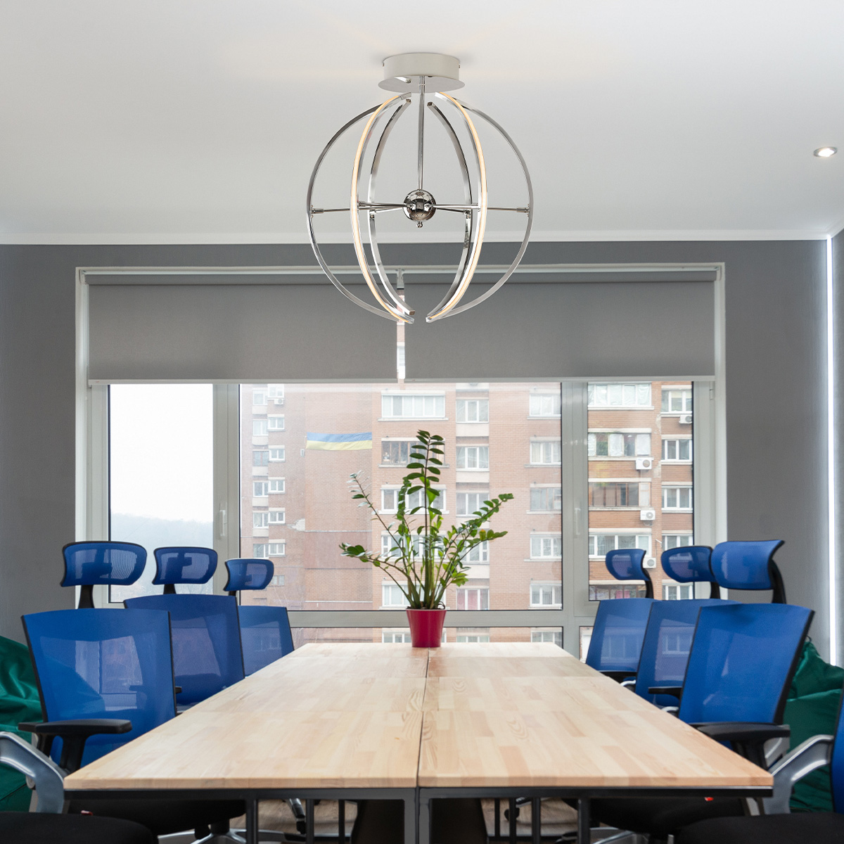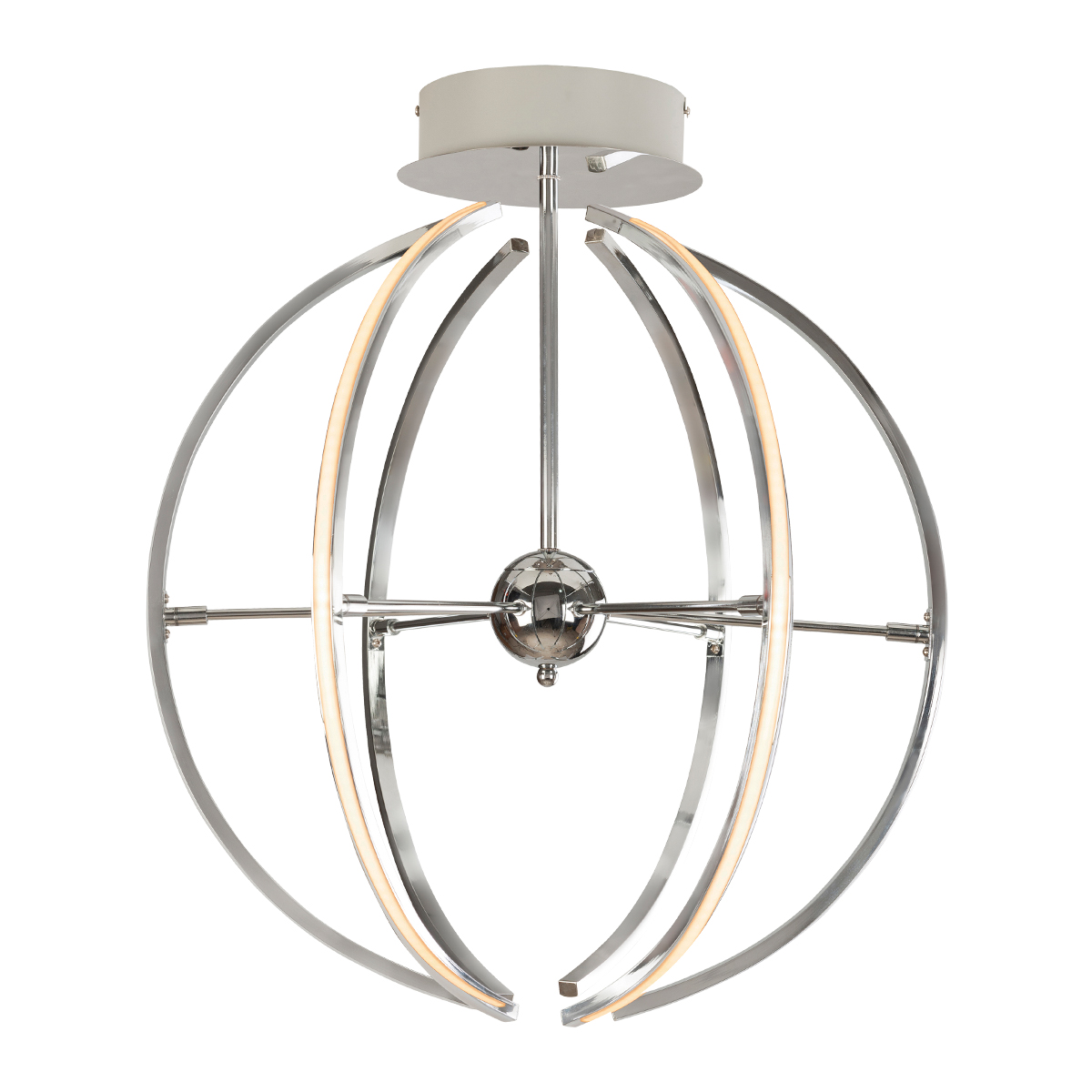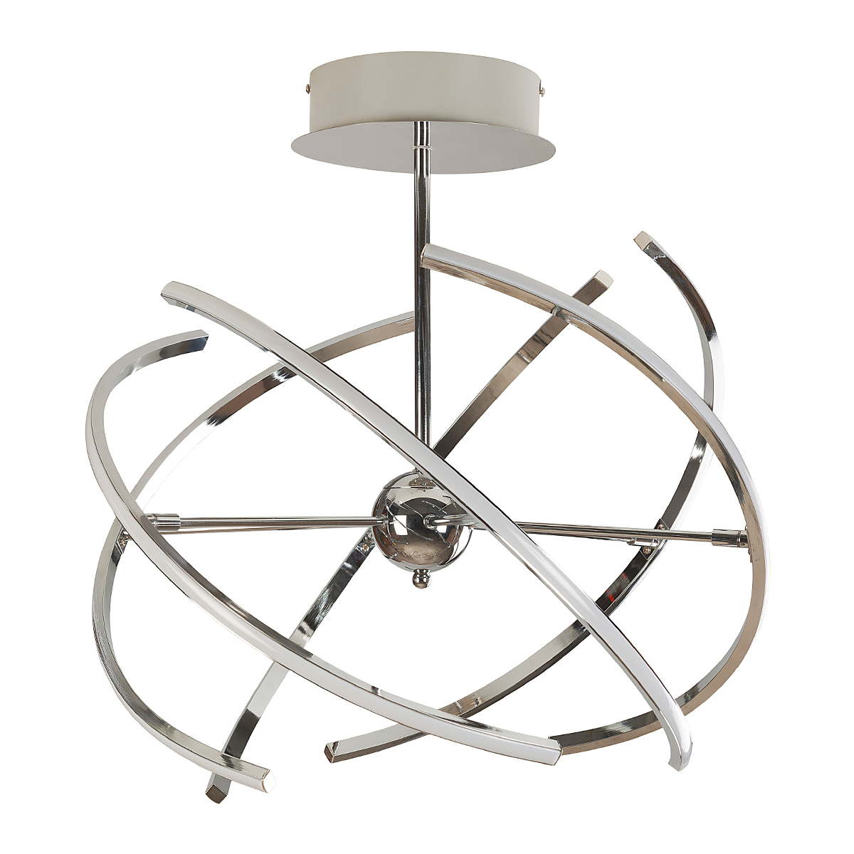 Lámpara elgante de LED para techo multiformas terminado cromado.