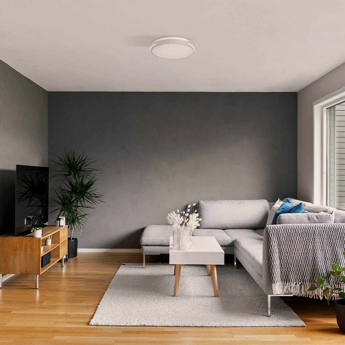 Lámpara LED tipo plafon de luz cálida color blanco.
