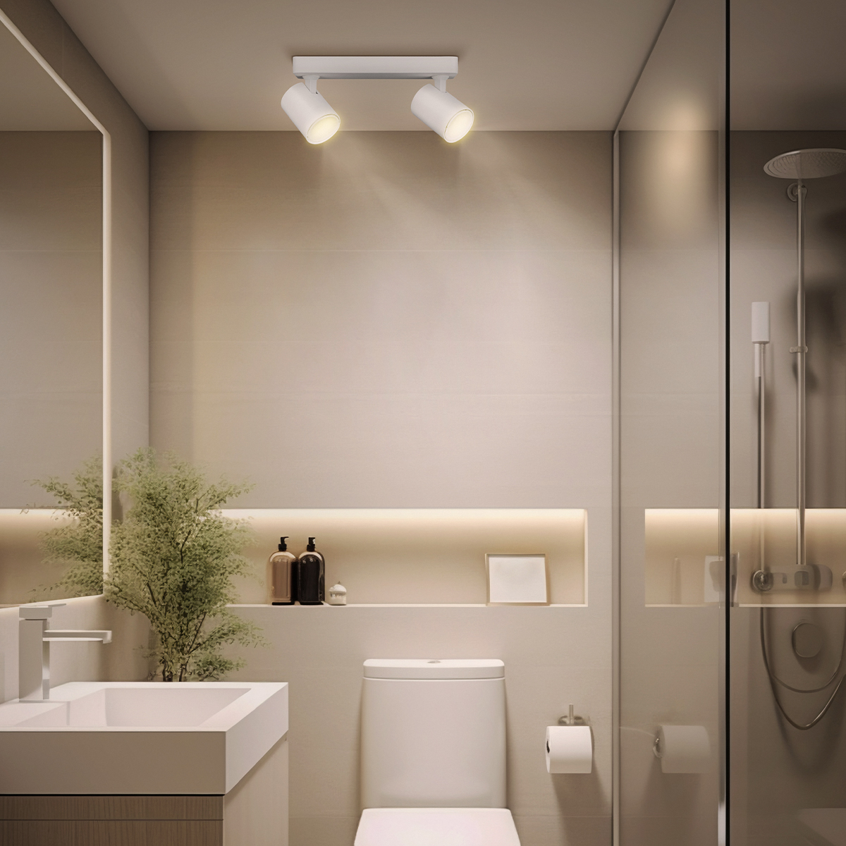 Luminaria blanca de sobreponer con 2 luces dirigibles para muro o techo.