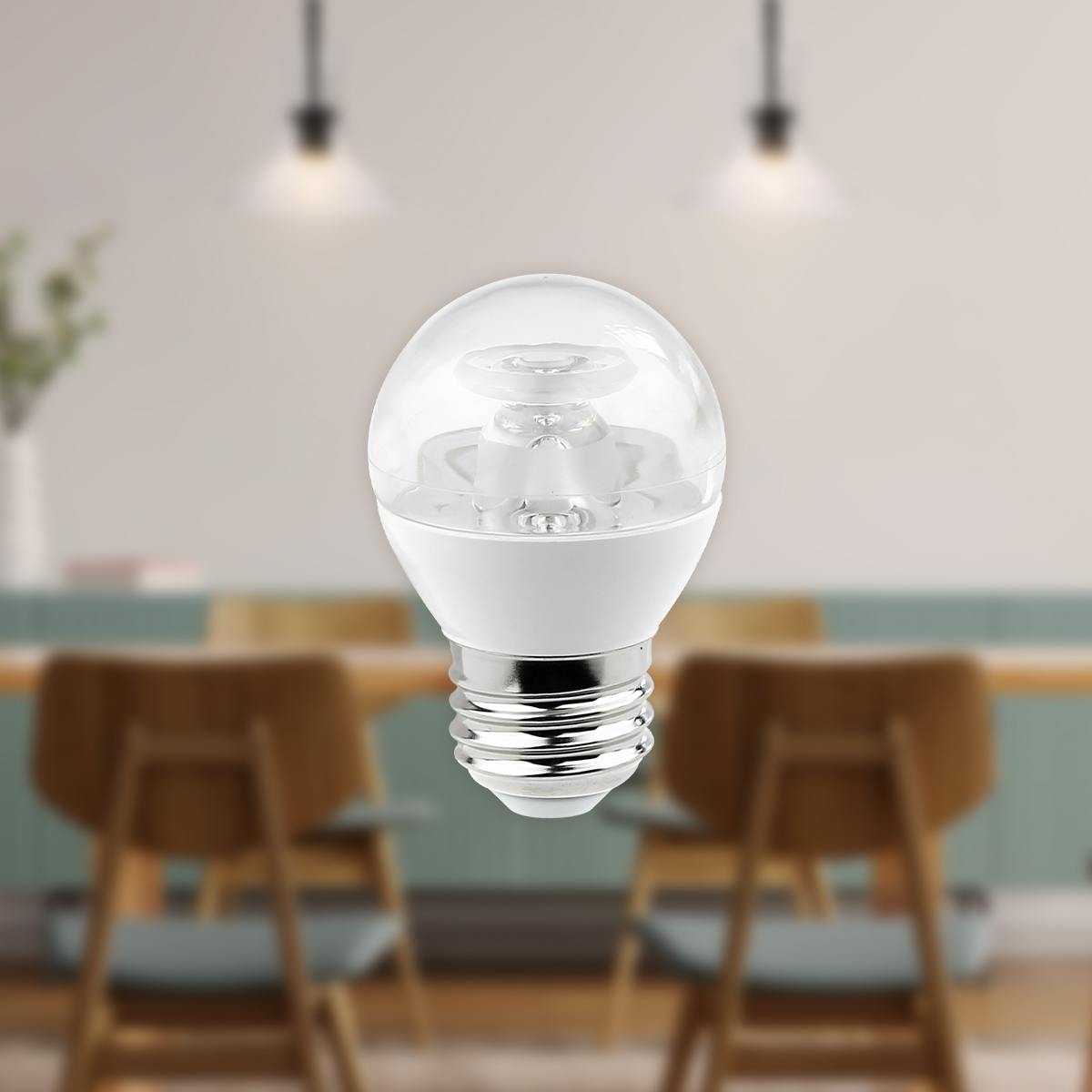 Foco pequeño transparente E27 de 4W y de luz cálida.