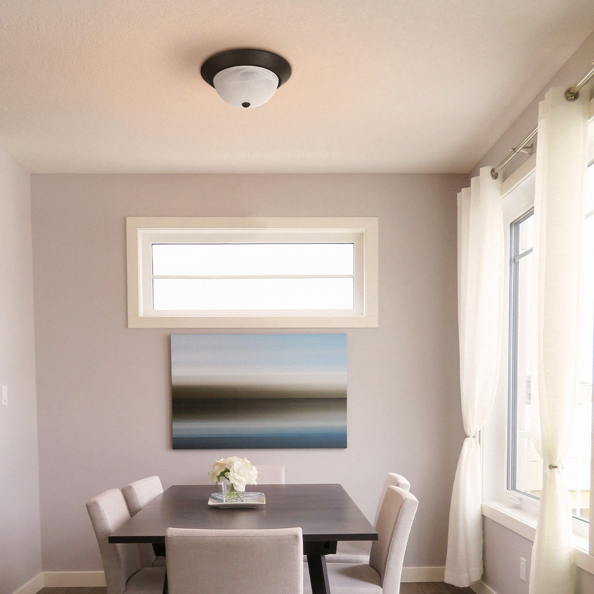 Plafon de techo en color chocolate y pantalla de cristal.