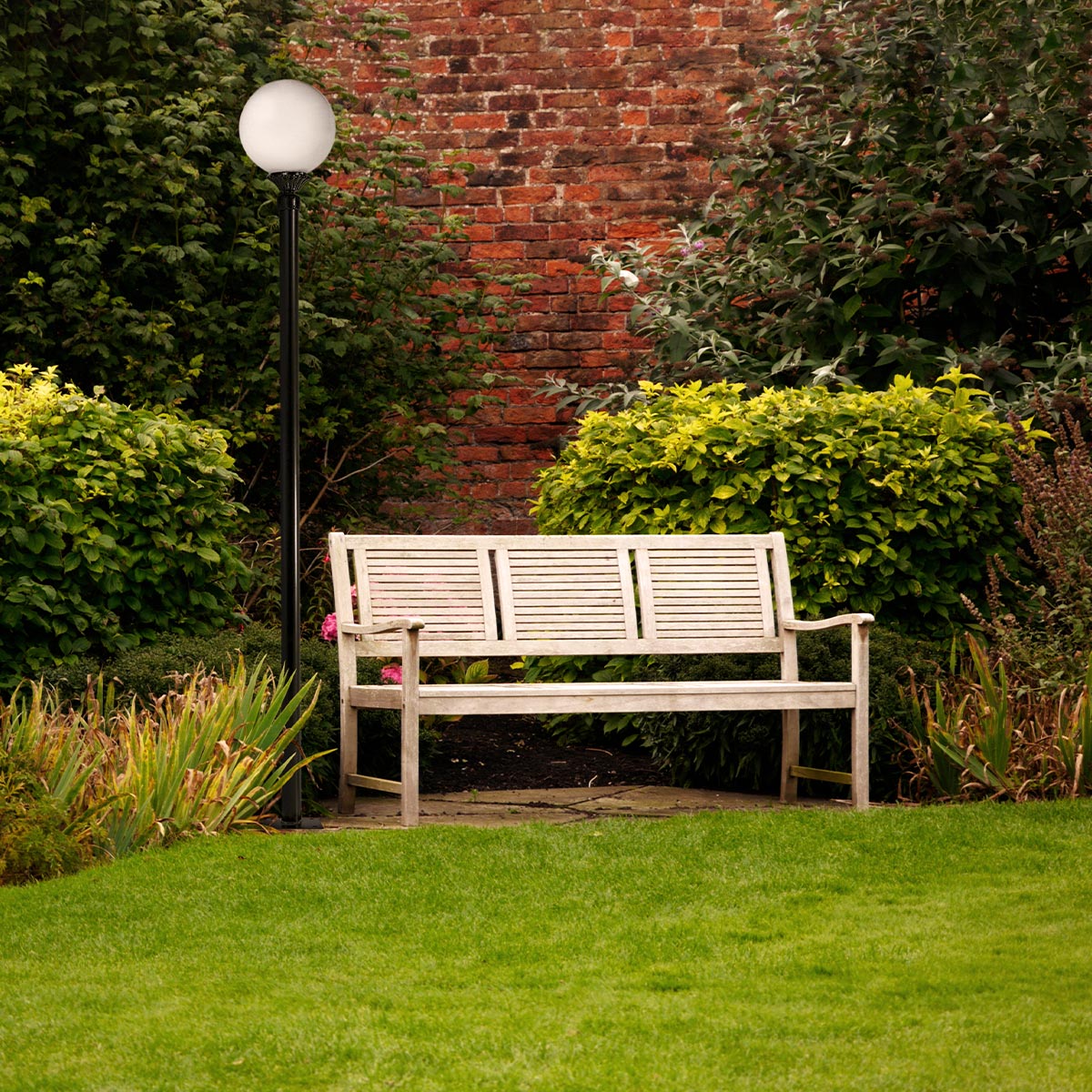 Poste con globo y color negro de aluminio y acero. Hecho en México.