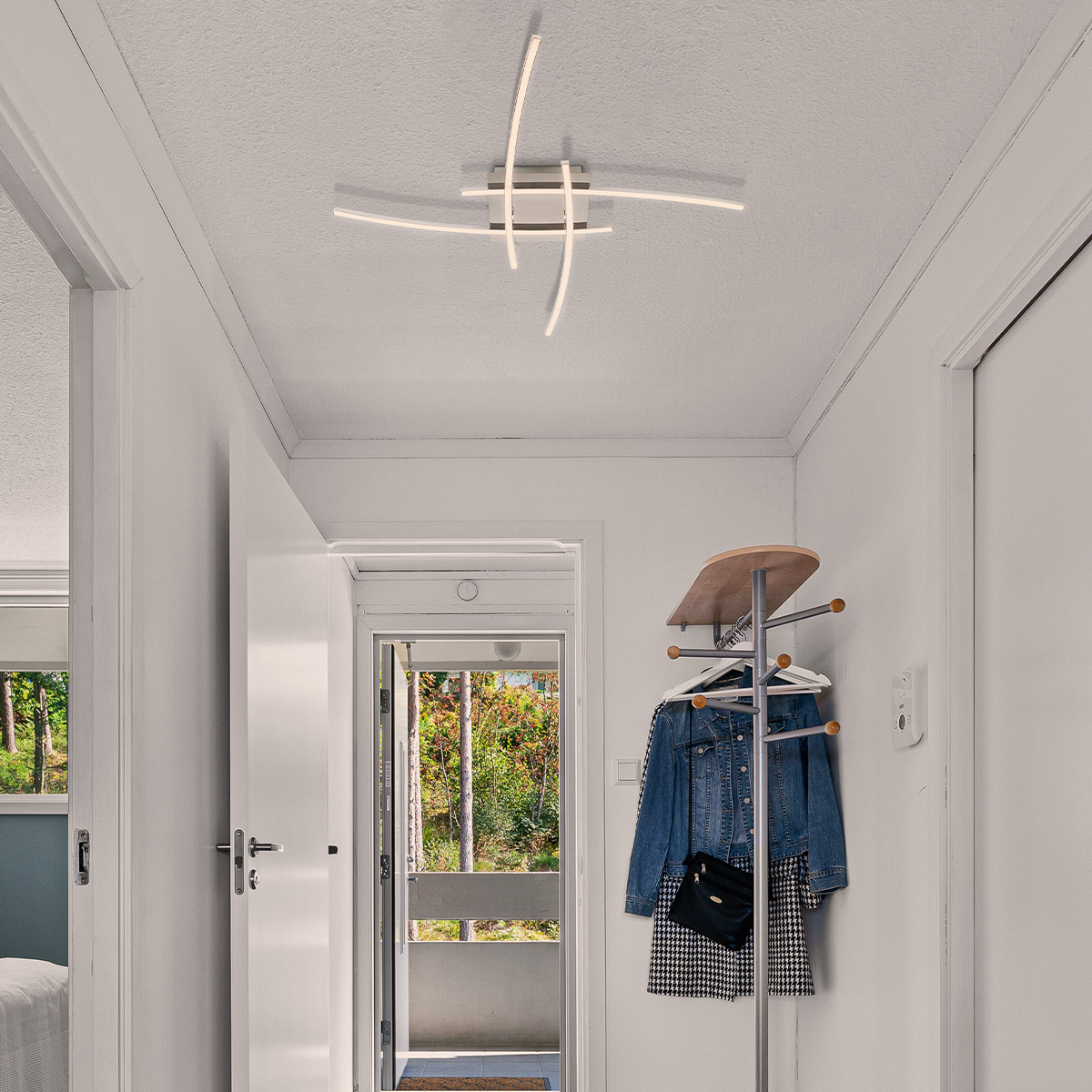 Lámpara de sobreponer decorativa para techo con tecnologia LED en terminado cromado.